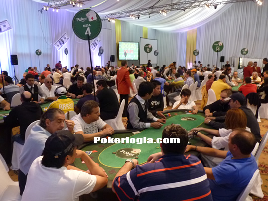 Los 216 jugadores de Argentina, Uruguay y Brasil principalmente, que se han dado cita en el salón Montecarlo del Hotel y Casino Conrad de Punta del Este, ingresan por la zona de acreditación y buscan sus lugares ansiosos por el comienzo de la partida.